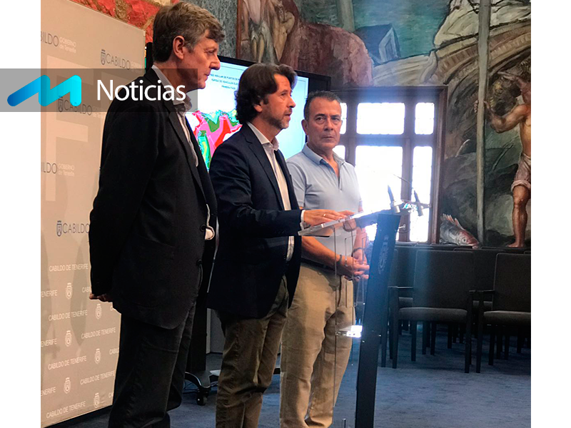 Presentación de la red de Recarga rápida de VE para la isla de Tenerife a Cargo de Carlos Alonso (presidente del Cabildo), Miguel Becerra (director de fomento) y Julián Santos (presidente de Asinelte).